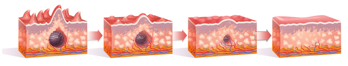 through a process called Dermal Tissue Remodeling.